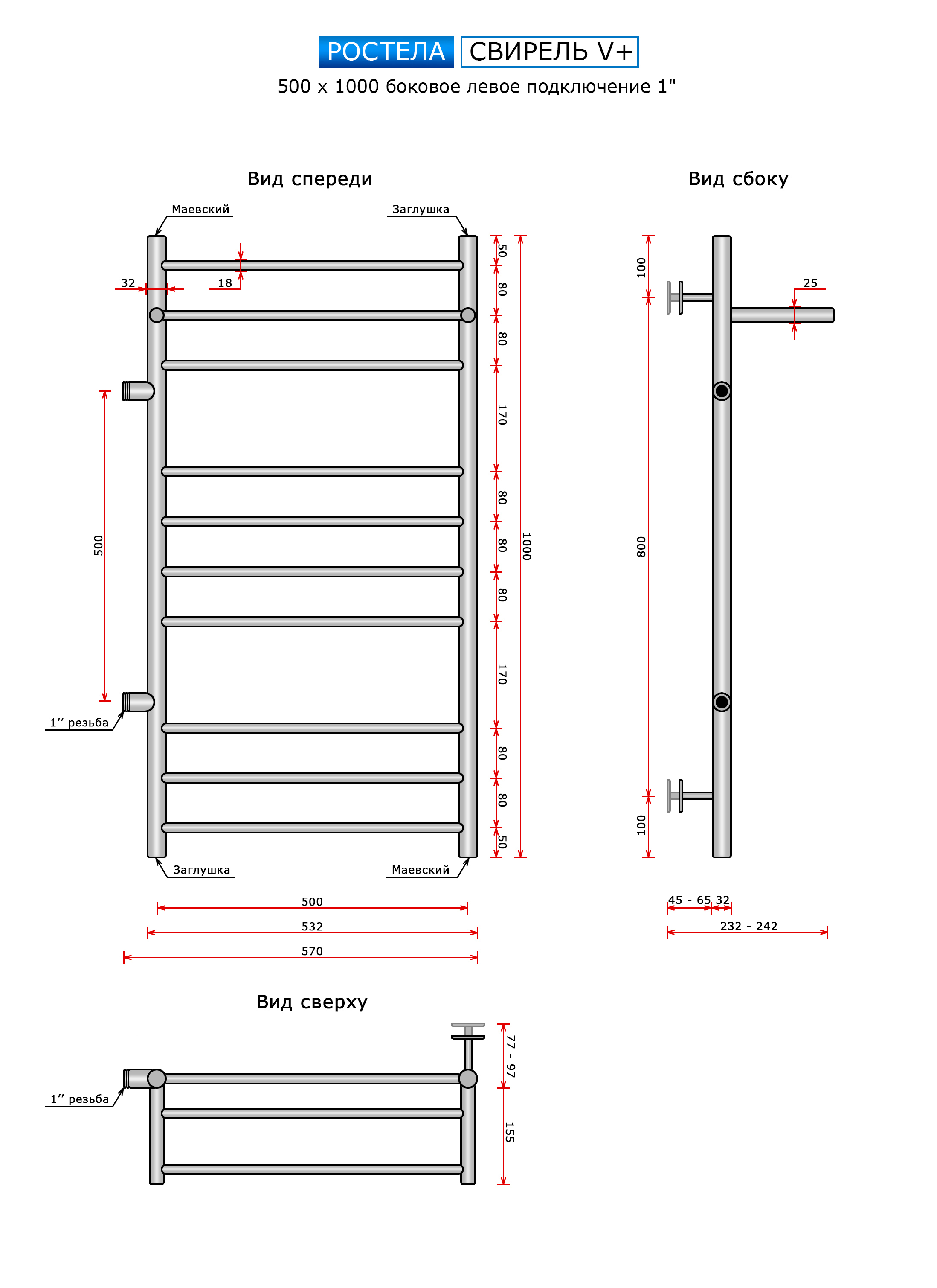 Способ нагреваполотенцесушитель водянойМатериалнержавеющая стальФормалесенкаШирина, мм532Высота, мм1000Межосевое расстояние500Диаметр подключения1"Диаметр трубы32ммРезьба (наружная/внутр)наружнаяЦветхромПокрытиеполированный (блестящий)Поворотные секциинетГарантия5 летПроизводительРостелаВес единицы:6.70