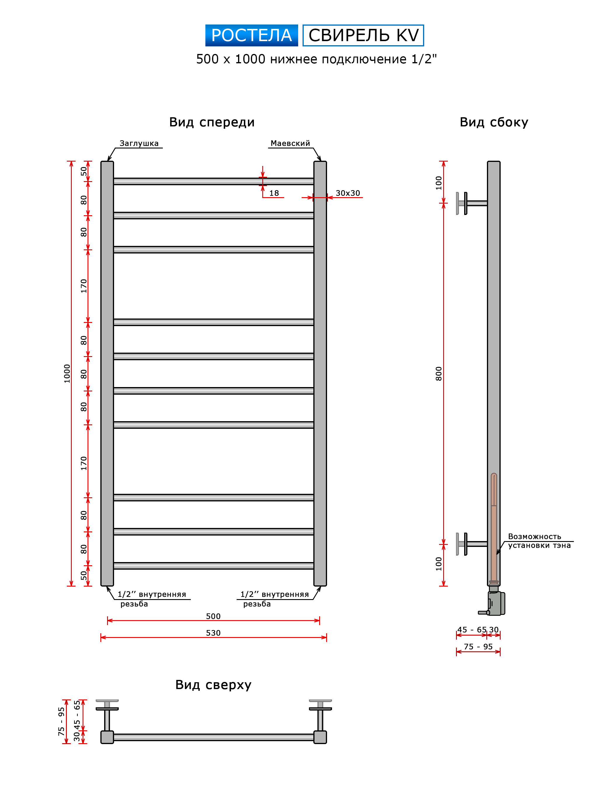 Способ нагреваполотенцесушитель водянойМатериалнержавеющая стальФормалесенкаШирина, мм532Высота, мм1000Межосевое расстояние500Диаметр подключения1/2"Диаметр трубы30 ммРезьба (наружная/внутр)внутренняяЦветхромПокрытиеполированный (блестящий)Поворотные секциинетГарантия5 летПроизводительРостелаВес единицы:6.10