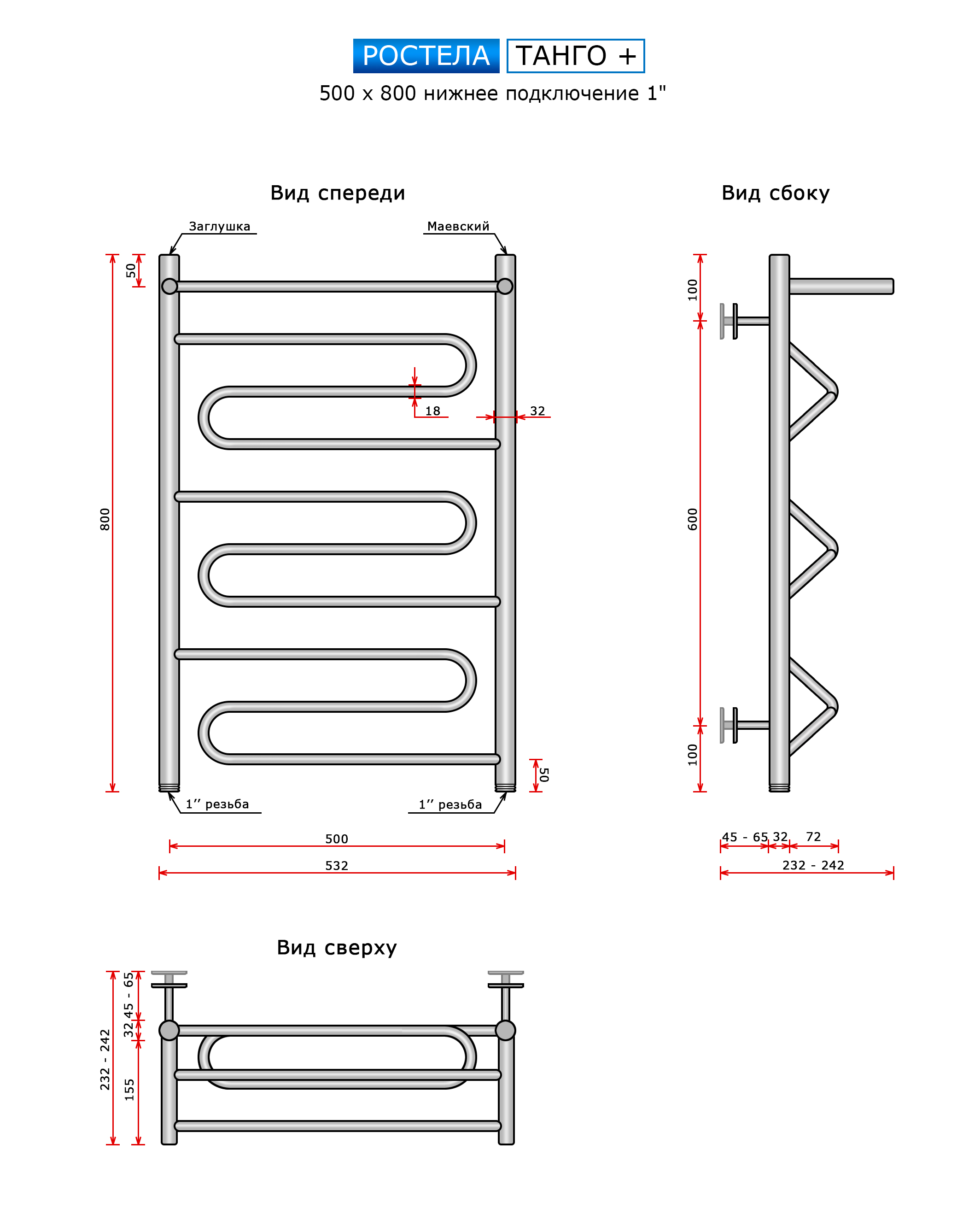 Способ нагреваполотенцесушитель водянойМатериалнержавеющая стальФормалесенкаШирина, мм532Высота, мм800Межосевое расстояние500Диаметр подключения1"Диаметр трубы32ммРезьба (наружная/внутр)наружнаяЦветхромПокрытиеполированный (блестящий)Поворотные секциинетГарантия5 летПроизводительРостелаВес единицы:6.40