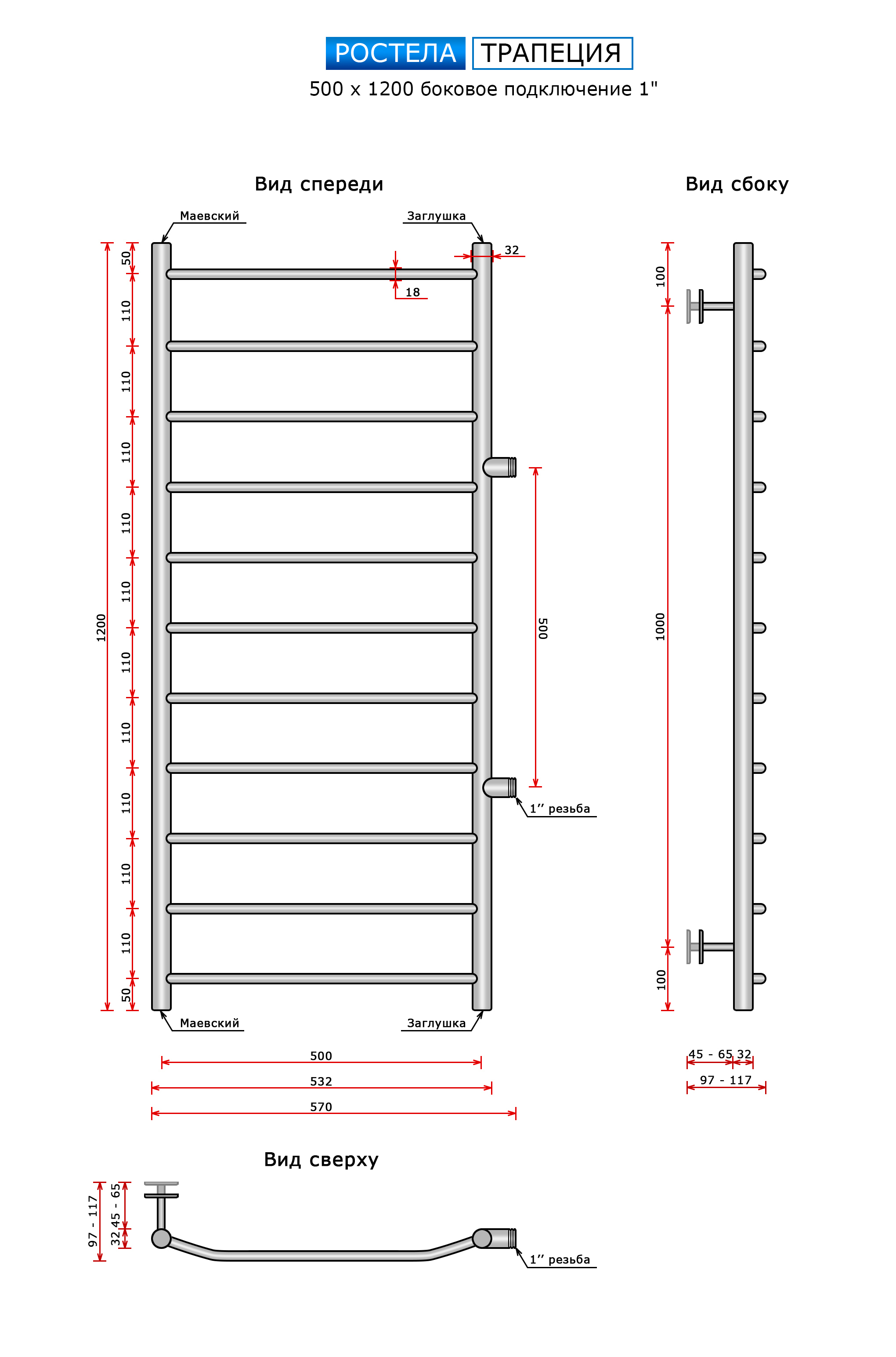 Трапеция (бок.подв.,1" рез) 500 х 1200 /11 купить в Минске по доступной цене в интернет-магазине keramin.by