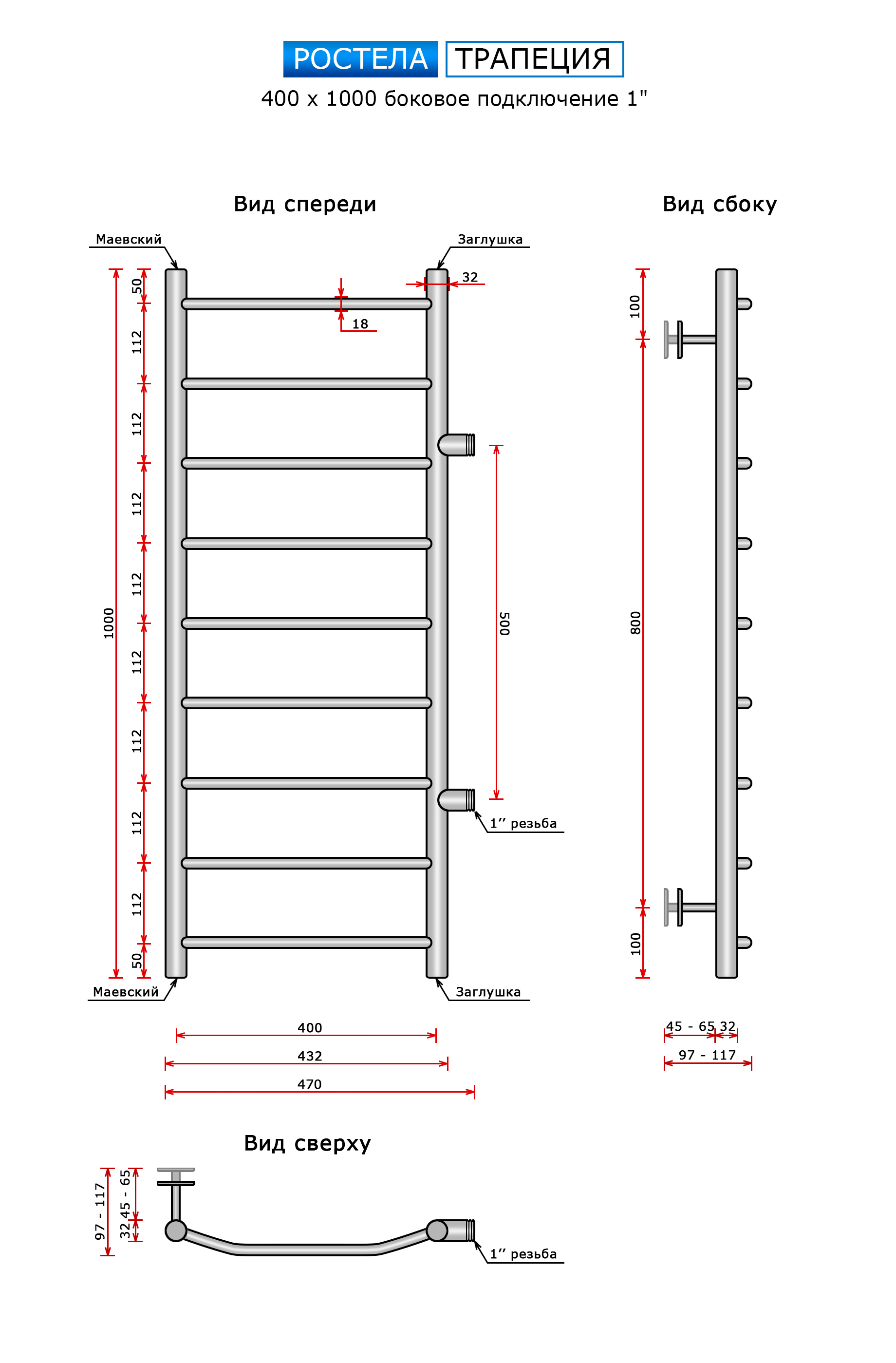 Трапеция (бок.подв.,1" резьба, м/о - 500 мм.) 400 х 1000 / 9 купить в Минске по доступной цене в интернет-магазине keramin.by