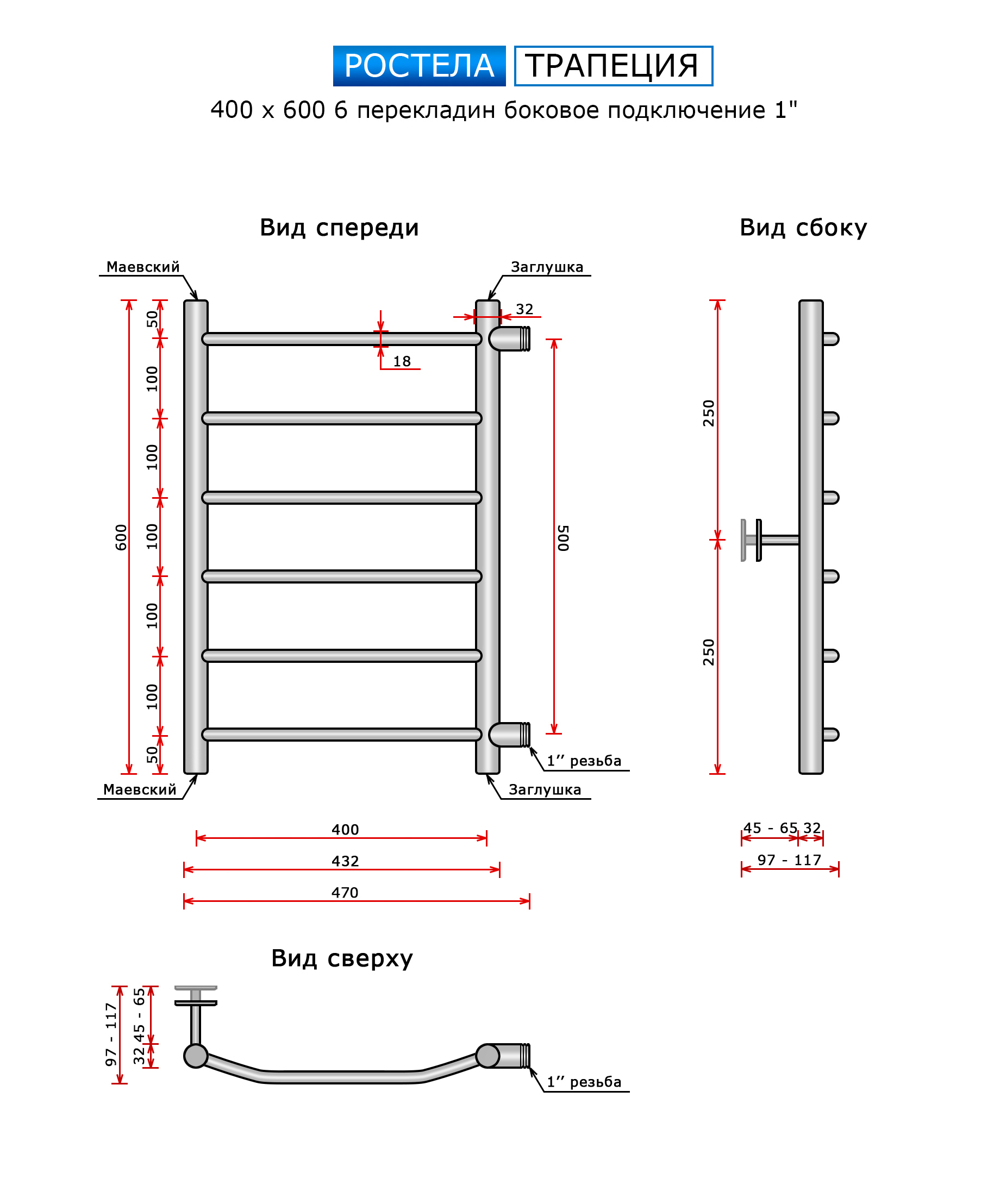Трапеция (бок.подв.,1" резьба, м/о - 500 мм.) 400 х 600 / 6 купить в Минске по доступной цене в интернет-магазине keramin.by