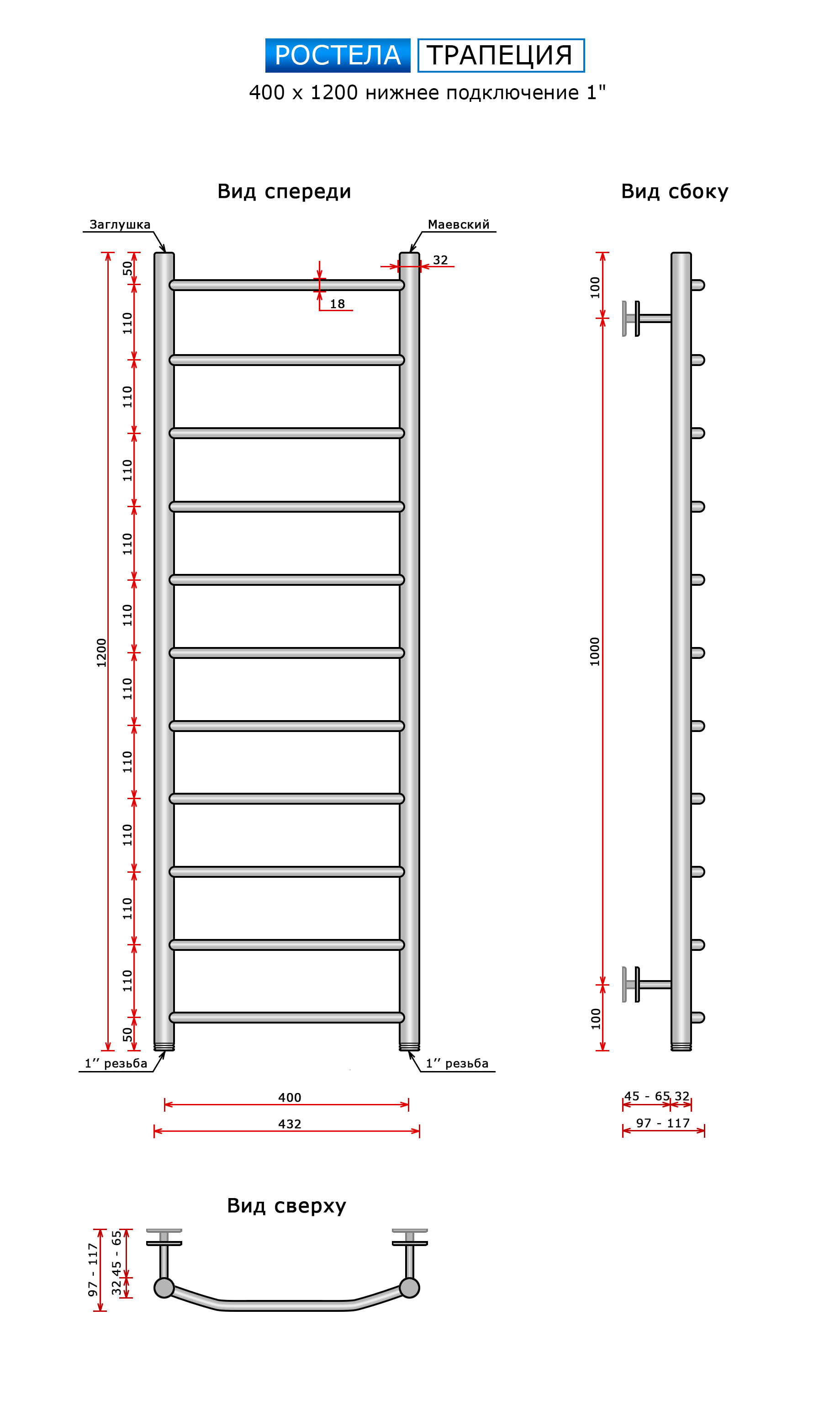 Трапеция (нижн.подв., 1" резьба) 400 х 1200 / 11 купить в Минске по доступной цене в интернет-магазине keramin.by