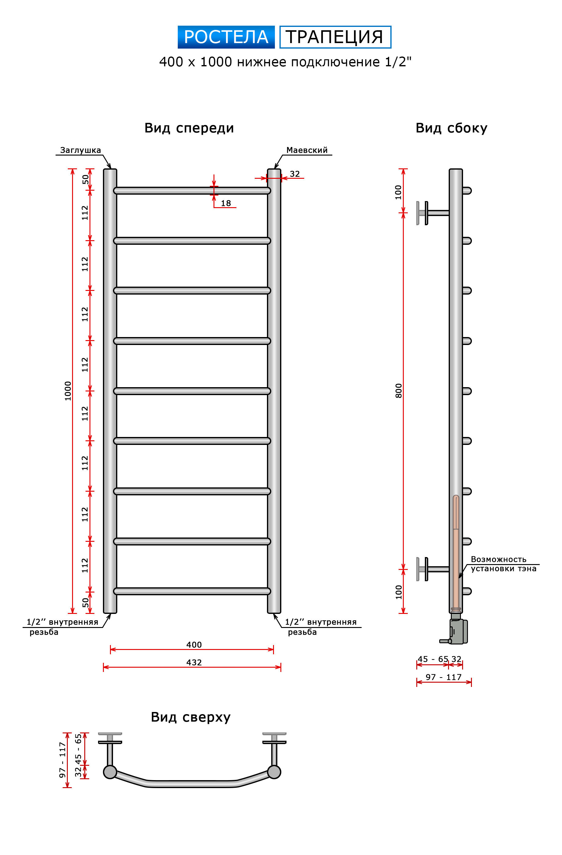 Трапеция (нижн.подв., 1/2" резьба) 400 х 1000 / 9 купить в Минске по доступной цене в интернет-магазине keramin.by