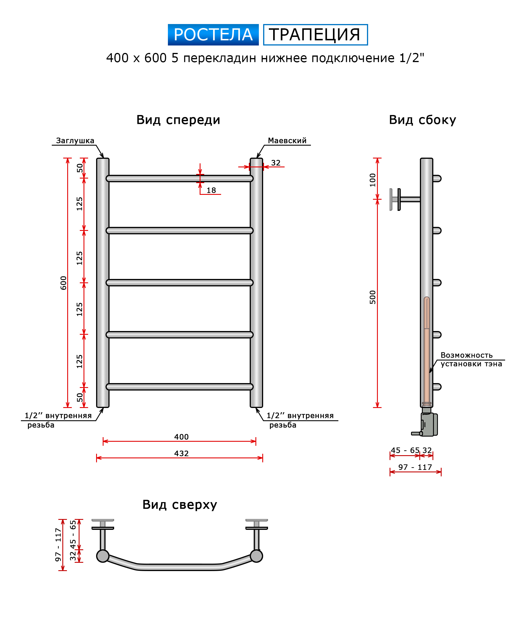 Трапеция (нижн.подв., 1/2" резьба) 400 х 600 / 5 купить в Минске по доступной цене в интернет-магазине keramin.by