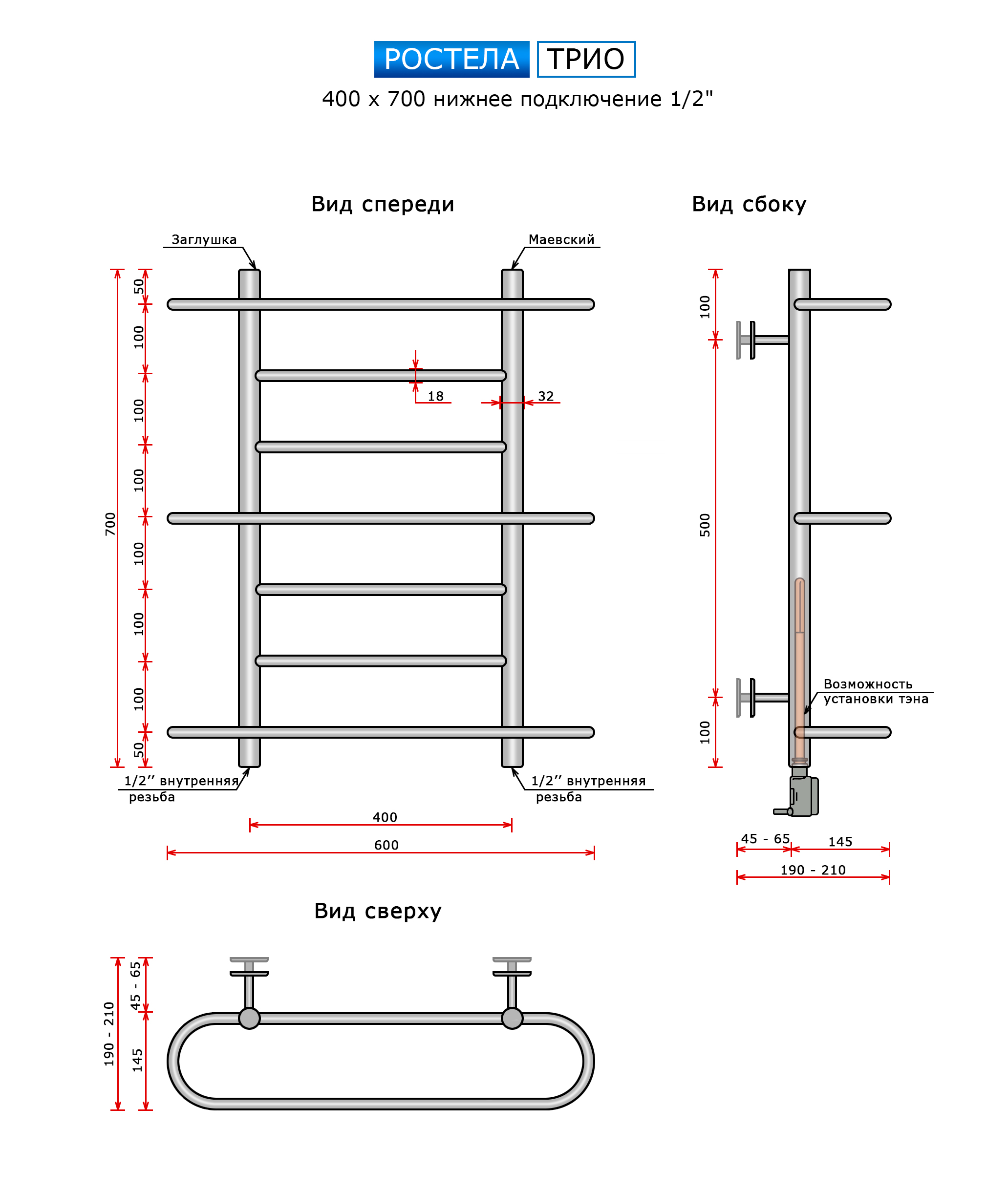 Способ нагреваполотенцесушитель водянойМатериалнержавеющая стальФормалесенкаШирина, мм600Высота, мм700Межосевое расстояние400Диаметр подключения1/2"Диаметр трубы32ммРезьба (наружная/внутр)внутренняяЦветхромПокрытиеполированный (блестящий)Поворотные секциинетГарантия5 летПроизводительРостелаВес единицы:5.00