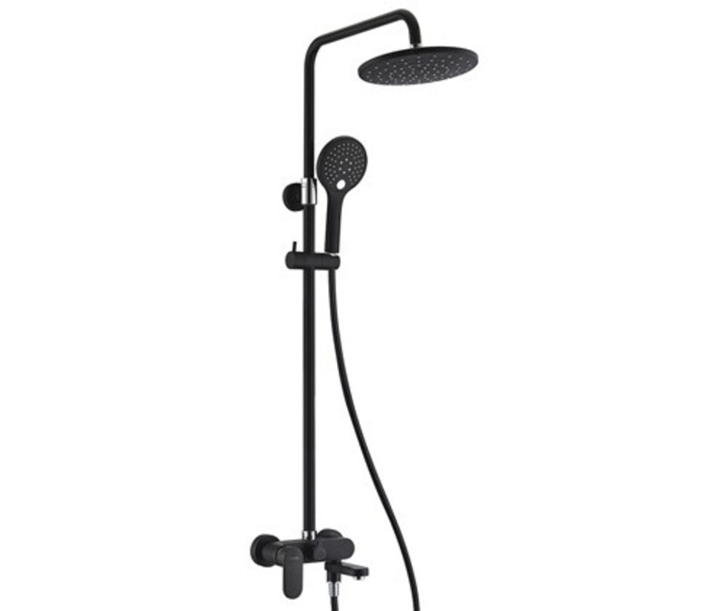 Душевой комплект A17401 со смесителем (смес-ль с кор. изл-ом, душевая насадка Д 225 мм, стойка, лейка 3-функ, черный Soft-touch)