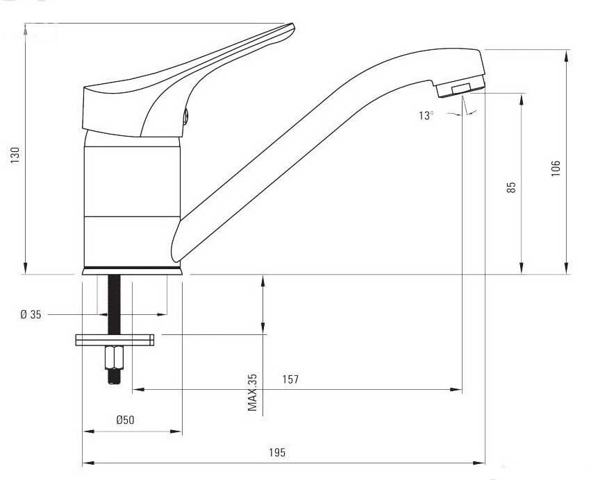 Высота смесителя, см 10.6