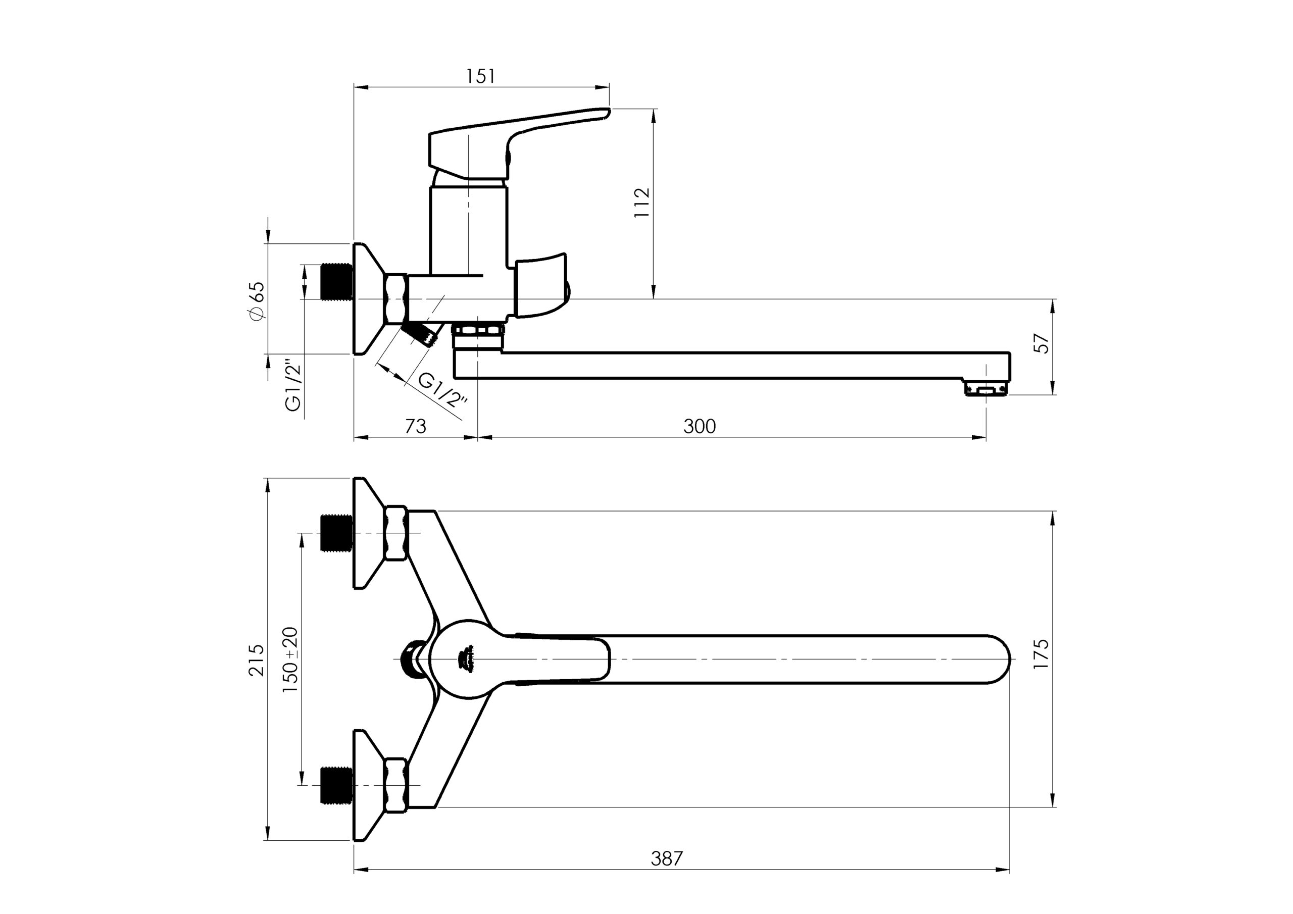 Смеситель для ванны Uno-11/C (Rubineta, Литва)