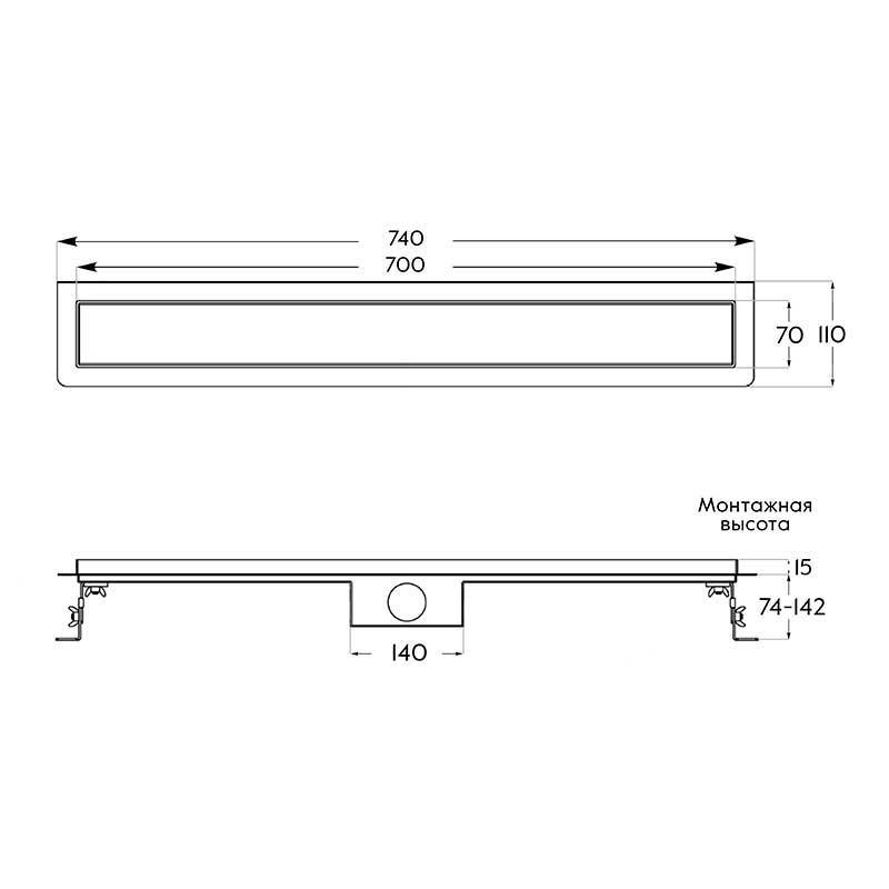 Душевой трап Axus Universal - это ключевой элемент современной ванной комнаты, который сочетает в себе безупречный дизайн и практичность. Корпус и вкладыш душевого лотка изготовлены из нержавеющей стали, сифон - пластиковый, обладает высоким уровнем прочности. Оборачиваемый вкладыш позволяет легко изменить дизайн душевой зоны. Одна сторона вкладыша предназначена под укладку плитки и делает сливное устройство практически незаметным, а вторая - гладкая из хромированной нержавеющей стали с повышенной устойчивостью к коррозии. Характеристики: материал: нержавеющая сталь СС304 толщина стали, мм: 1,2 ширина съемной панели, мм: 52 диаметр сливного отверстия, мм: 40/50 сифон поворотный на 360º пропускная способность, л/мин: 45 материал желоба: нержавеющая сталь вид затвора: сухой/влажный горизонтальный слив гидроизоляционный материал в комплекте регулируемые ножки монтажные характеристики: размер видимой части, мм: 700*70 монтажная высота, мм: 74-142 Комплектация: душевой трап лотковый из нержавеющей стали, шт: 1 вкладыш 2 в 1 гладкий/под плитку, шт: 1 сифон поворотный 360°, шт: 1 ножки регулируемые по высоте, шт: 2 гидроизоляционный материал, шт: 1 ключ для снятия решетки, шт: 1 переходник для подключения канализации, мм: d 40/50