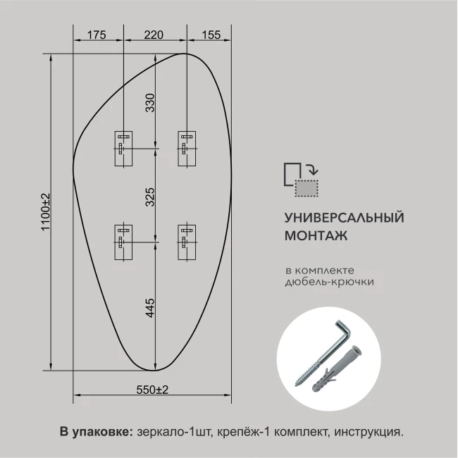 ТипЗеркала в ванную комнатуНазначениедля ванныФорманестандартнаяМатериал корпусазеркальное полотноПодсветканетЦветсереброВысота, мм1100Ширина, мм550Вес единицы:7.26