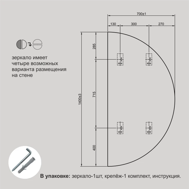 ТипЗеркала в ванную комнатуНазначениедля ванныФорманестандартнаяМатериал корпусазеркальное полотноПодсветканетЦветсереброВысота, мм1400Ширина, мм700Вес единицы:11.76