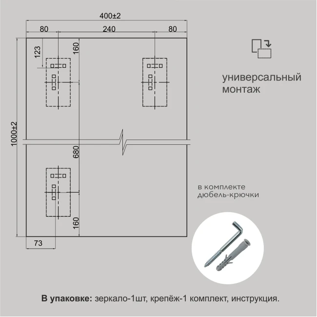 ТипЗеркала в ванную комнатуНазначениедля ванныФормапрямоугольнаяМатериал корпусазеркальное полотноПодсветканетЦветсереброВысота, мм1000Ширина, мм400Вес единицы:4.80
